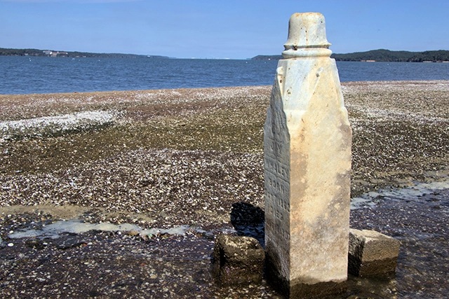 In late 2025, as seen in this photo, someone placed a flag pole at this site to help mark the location for boaters during summer pool. Whether or not nature claims the makeshift pole is up for debate.