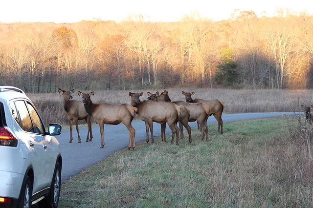 Visitors are required to remain inside their vehicles when elk or bison are within sight. When animals are not present, short stops are allowed at interpretive signage pull-offs. This helps protect both visitors and wildlife while keeping the experience relaxed and safe.